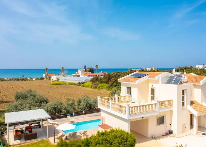 Det finns matplats utomhus med te-/kaffebryggare. I köket finns även mikrovågsugn, kylskåp och köksredskap. Den närmaste busshållplatsen är 2nd Agia Marina Chrysochous, som finns några minuters promenad från villan med 3 badrum. Det finns en solig uteplats på plats, medan vattensportaktiviteter, vandring och cykling erbjuds i närheten av villan.